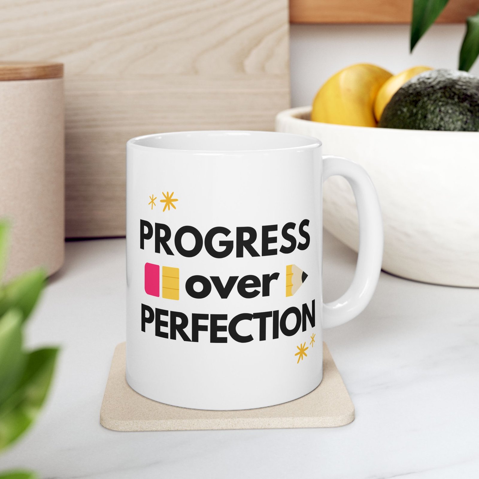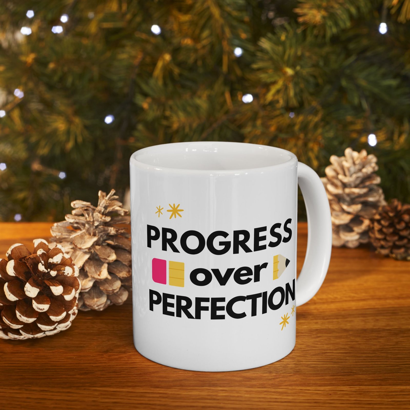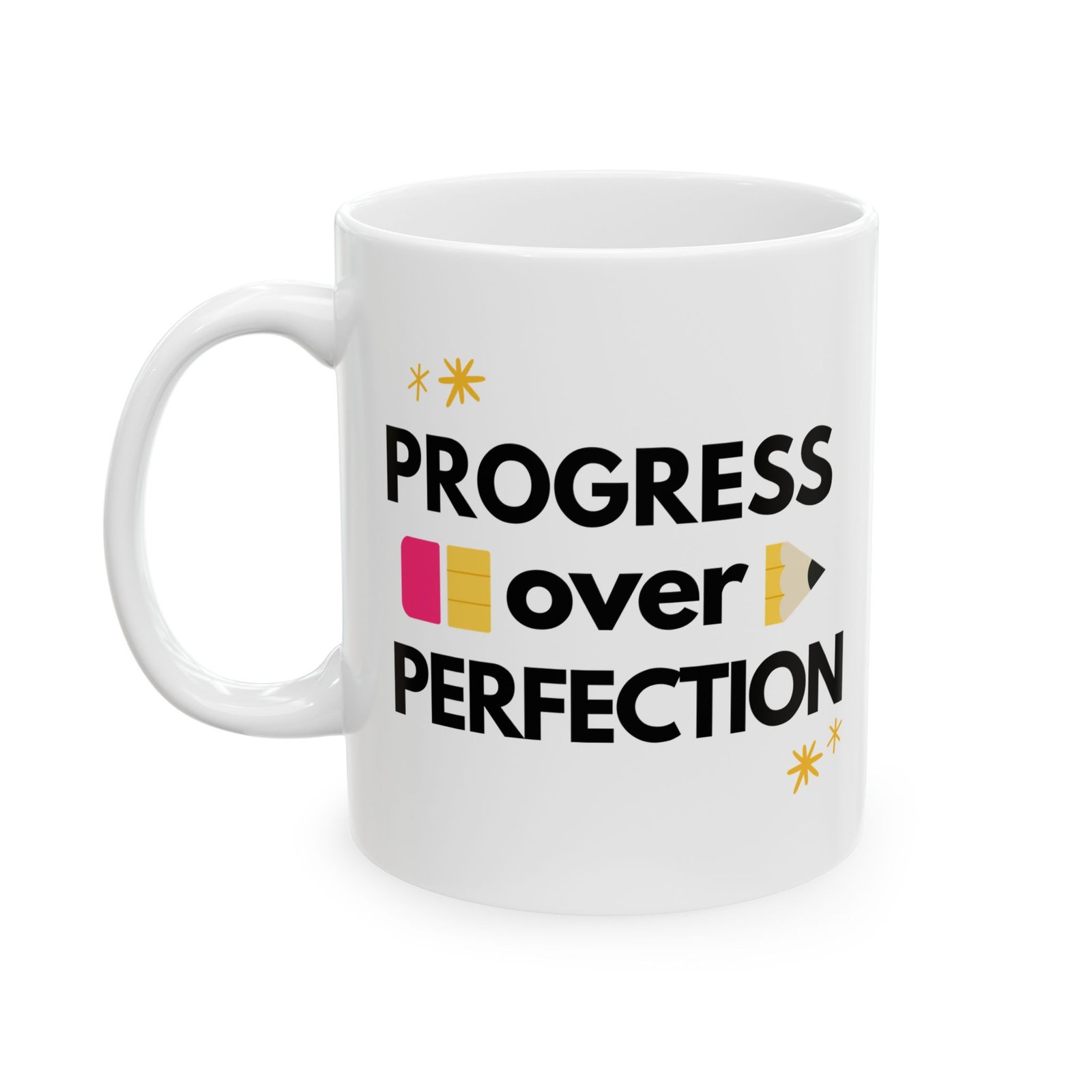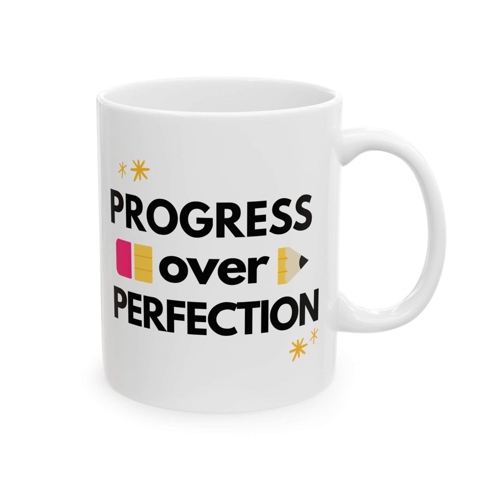 This Progress Over Perfection ceramic mug is the ideal gift for teachers, reminding them that progress is more important than perfection. With vibrant colors and a shiny finish, this mug is perfect for daily use and can be a great addition to any teacher’s collection. Relevant for Teacher Appreciation Week, end of the school year gifts, and back to school celebrations.
